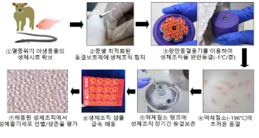 국립생물자원관 연구진은 2016년부터 종별 맞춤형 동결보존 기술을개발해 산양, 뱀장어, 한강납줄개 등 멸종위기에 몰린 19종의 성체줄기세포를 영하 196도 액체질소에서 최장 7년 동안 동결보존했다.