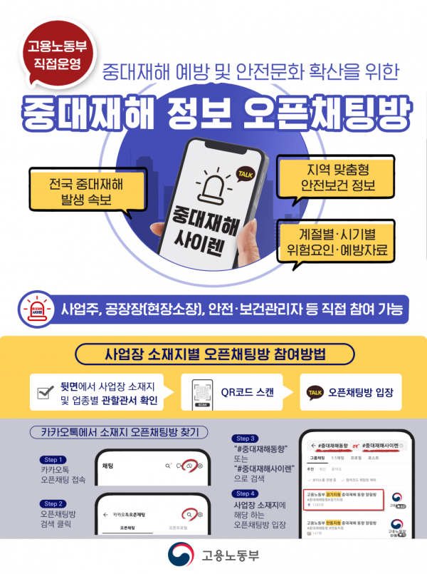 요즘 현장 안전관리자 사이에서는 “이제 별도 검색 없이 중대재해 사이렌 오픈채팅방만 확인하면 우리 사업장에 꼭 맞는 재해예방 자료를 찾을 수 있다”라는 입소문이 퍼지고 있다.