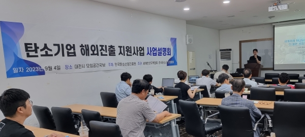[Q뉴스] 한국탄소산업진흥원은 지난 4일 세계한인무역협회와 함께 ‘2023년 탄소기업 해외진출 지원사업 설명회’를 개최했다.