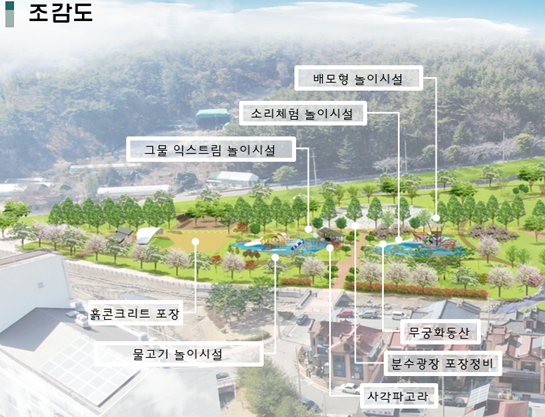 이번 사업을 통해, 한들공원에는 어린이와 노인층을 위한 여가공간인 그물 익스트림 놀이시설, 소리체험 놀이시설, 게이트볼장이 조성된다.