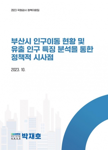 더불어민주당 박재호 의원은 10월 26일 국회 정무위원회 종합감사에서 ‘부산시 인구이동 현황 및 유출 인구 특징 분석을 통한 정책적 시사점’ 정책보고서를 공개했다.