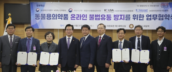참여 기관은 7개로 농림축산검역본부·국립수산물품질관리원장·온라인 쇼핑협회·인터넷기업협회가 협약을 체결하고 관련 단체인 수산질병관리사회·수의사회·동물약품협회 등이 함께했다.