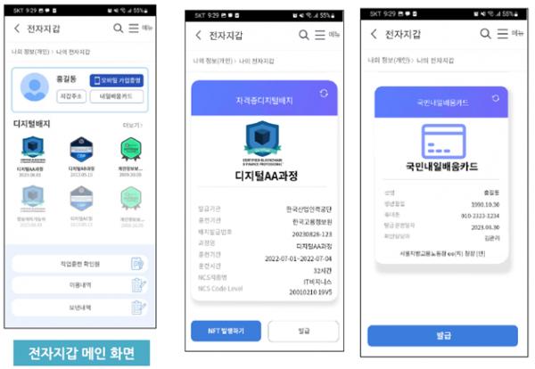 앞으로는 전자지갑을 통해 국민내일배움카드 발급확인서도 발급·관리 할 수 있도록 확대함으로써 사용자가 카드 발급을 위해 은행 방문 시 별도 서류 제출 없이 전자지갑을 보여주는 것만으로 카드 신청이 가능해질 예정이다.