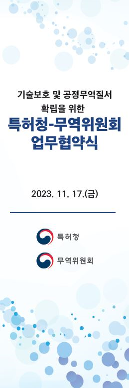 [Q뉴스] 특허청과 무역위원회는 11월 17일 10시 30분 특허청 서울사무소에서 ‘기술보호 및 공정무역질서 확립을 위한 업무협약’을 체결했다고 밝혔다.