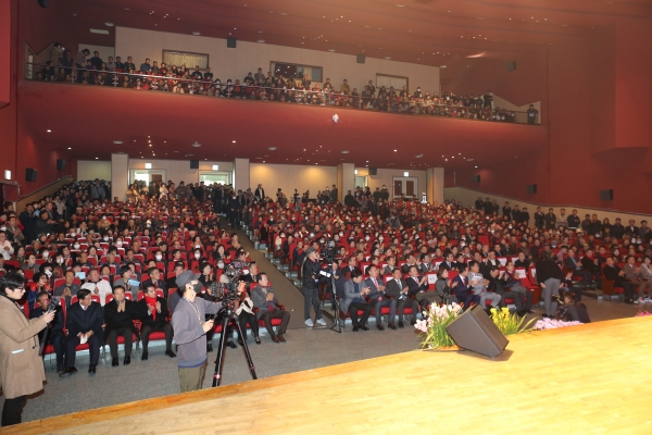 이날 행사에는 정진석·나경원·홍문표·박대출·배현진 의원 등 전·현직 국회의원 20여명이 대거 참석하고 이외에도 지방자치단체장, 지역사회 각계 인사, 군민 등 3천여명이 참석해 세를 과시했다.
