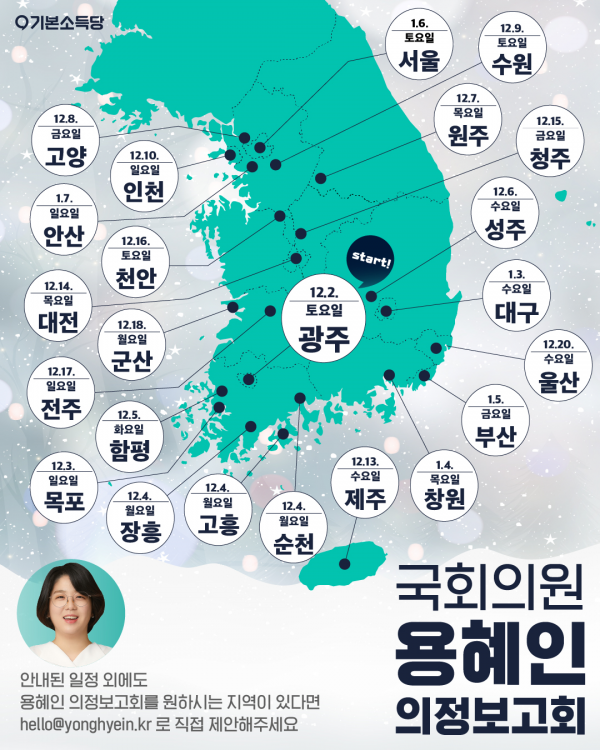 [Q뉴스] 기본소득당 용혜인 의원이 12월 8일부터 10일까지 경기·인천 지역에서 의정보고회를 개최한다.