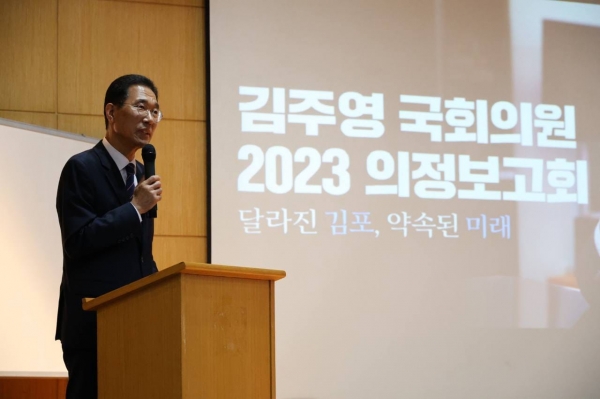 2023년 의정보고회는 김주영 의원의 의정활동 전반과 더불어 지역 현안 추진현황을 보고하고 향후 활동 방향에 대한 주민 의견을 청취하는 순서로 진행됐다.