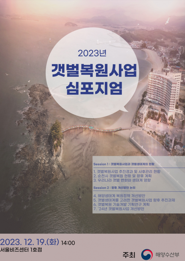 [Q뉴스] 해양수산부는 12월 19일 오후 2시 서울비즈센터에서 ‘갯벌복원사업 토론회’를 개최한다.