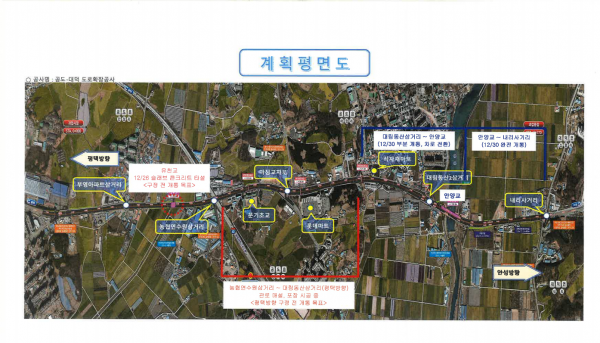 아울러 유동 인구가 많은 시가지 구간인 농협연수원 삼거리~대림동산 삼거리 구간도 오는 2월 설 연휴 전 개통 목표로 공사를 진행하고 있다.
