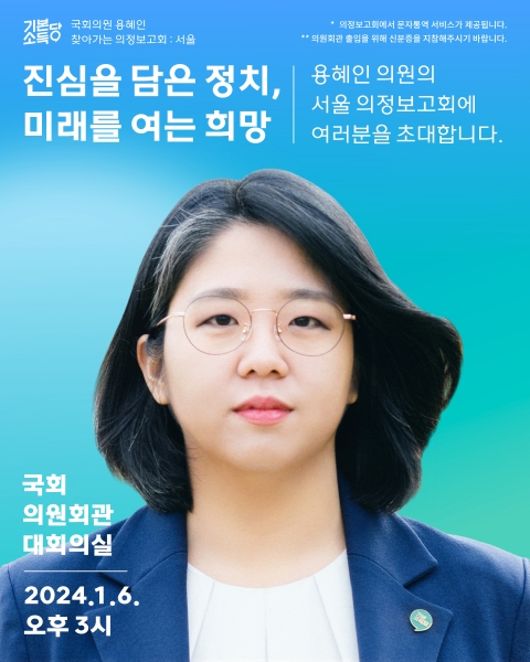 용혜인 의원은 1월 6일~7일 서울·안산 의정보고회를 마지막으로 한달여 간의 의정보고회를 마무리할 예정이다.