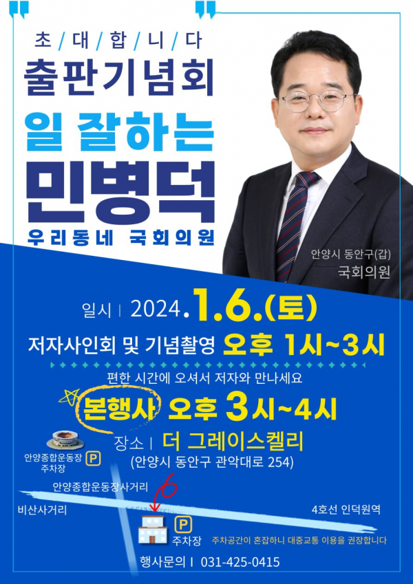 [Q뉴스] 더불어민주당 민병덕 국회의원은 1월 6일 네 번째 책, ‘우리 동네 국회의원 일 잘하는 민병덕의 출판기념회를 열어 안양시민들과 만날 예정이다.