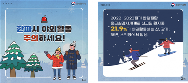 지난 2022-2023절기 한랭질환 응급실감시체계 결과에서 살펴본 결과도 야외활동 장소에서 발생한 경우가 전체의 21.9%였다.