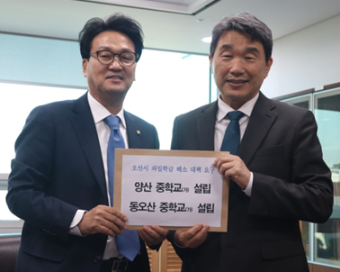 이어 11월 이주호 교육부 장관도 만나 양산중·동오산중 설립 요구안을 전달했다.