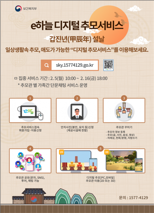 [Q뉴스] 보건복지부는 설날 연휴를 맞아 고인을 추모하고 가족과 친지, 지인 간 비대면 소통이 가능한 ‘디지털 추모서비스’ 기능을 고도화해 제공한다고 밝혔다.
