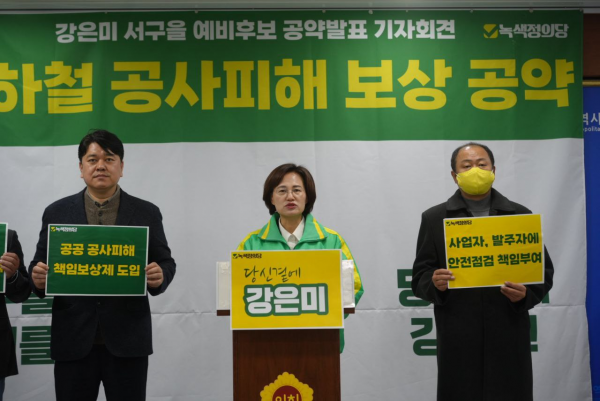 [Q뉴스] 광주 서구에서 기초의원, 광역의원을 역임한 녹색정의당 강은미 의원은 오늘 광주시의회 3층 브리핑룸에서 지하철 공사피해 보상제 도입 공약발표 기자회견을 개최했다.