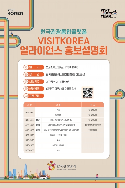 [Q뉴스] 한국관광공사는 외국인 관광객 유치 활성화를 위해 한국관광통합플랫폼 ‘VISITKOREA’와 협업할 ‘VK 얼라이언스’ 회원사를 모집한다.