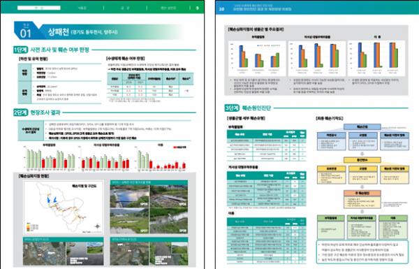 이번 자료집은 수생태계 건강성 평가 결과가 나쁜 유역별 주요 하천을 대상으로 주요 원인 분석과 구간별 복원방향을 총 4단계의 절차로 소개한다.