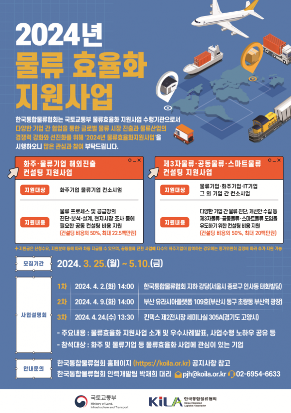 공모는 3월 25일부터 5월 10일까지 7주 동안 진행되며 자세한 내용은 한국통합물류협회 누리집을 참고하면 된다.