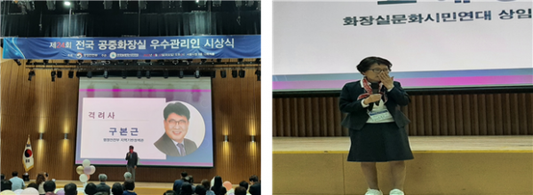 ‘공중화장실 우수관리인 선정 및 시상’은 깨끗하고 안전한 공중화장실 환경 조성의 숨은 주역으로서 공중화장실 관리인들이 긍지와 자부심을 가질 수 있도록 2000년부터 매년 추진하고 있다.