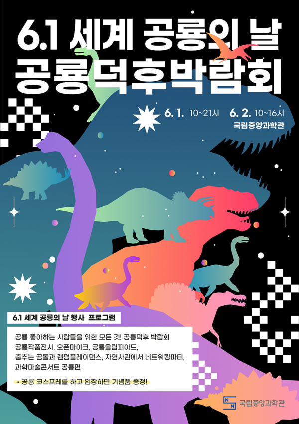 ‘6.1 세계 공룡의 날’의 프로그램별 내용, 대상, 기간, 참가방법 등 자세한 정보는 국립중앙과학관 누리집에서 확인할 수 있다.