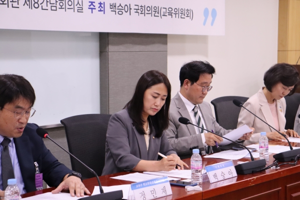 간담회에는 국회 교육위원회 강경숙 의원 이 참석해 축사를 했으며 , 국회입법조사처 이덕란 연구관이 좌장을 맡았다.