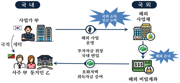 미신고 해외 수익에 대한 국세청의 추적을 피하기 위해 이름·주민등록 등 흔적을 지우고 외국인으로 국적을 세탁한 탈세자이다.