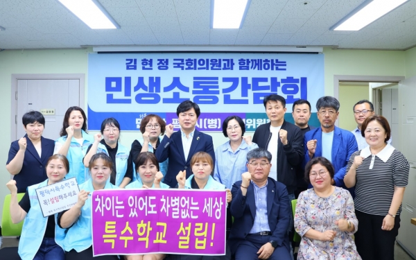 김현정 의원은 지난 29일 비전동 국회의원 사무소에서 평택시 특수학교설립추진위원회 소속 학부모, 시·도의원, 평택시, 평택교육지원청, 학교 교사 등이 20여명이 함께 한 민생소통간담회를 갖고 “턱없이 부족한 공립 특수학교 설립을 도와서 지체장애를 겪는 학생들이 차별없는 교육 기회를 누리도록 정성을 쏟겠다”고 밝혔다.