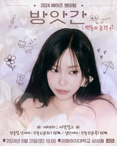 8일 오후 8시부터 예매처 티켓링크를 통해 ‘2024 헤이즈 팬미팅 [방앗간 : 떡들의 습격]’의 티켓 예매가 열린다.