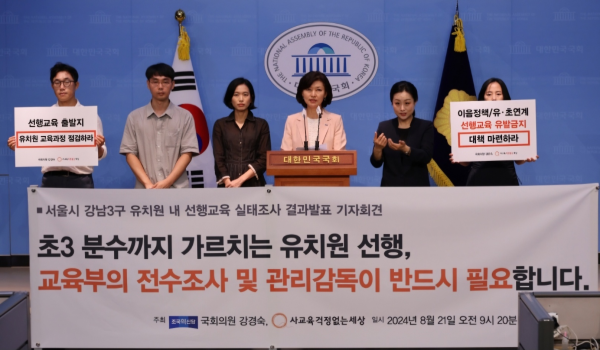 이런 개탄스러운 현실에 교육부가 나서서 영유아의 건강한 신체·정서 발달을 저해하는 선행교육 실체를 파악하고 문제를 해결할 것을 다시 한번 촉구한다”고 덧붙였다.