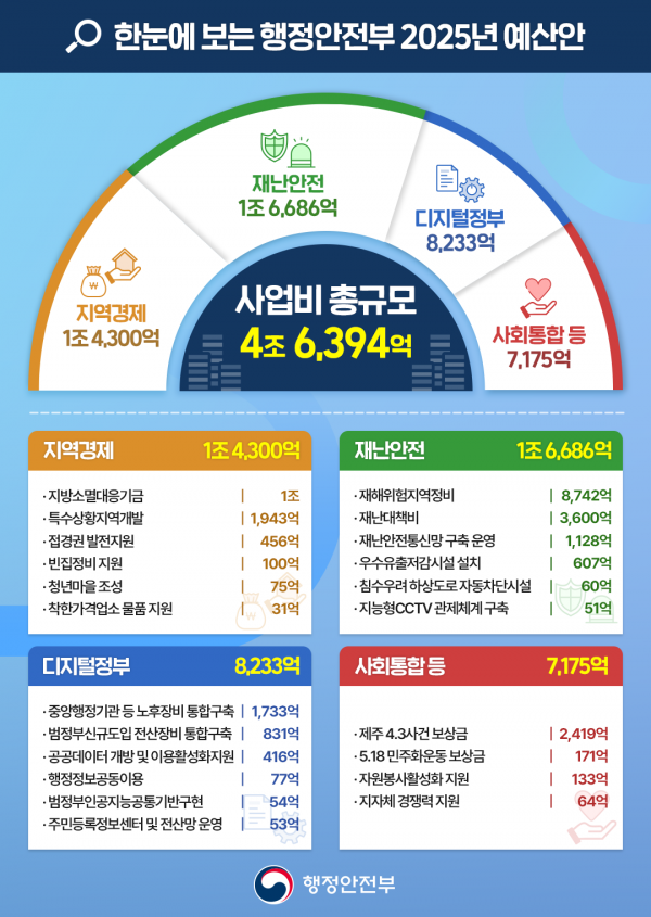 [Q뉴스] 행정안전부는 2025년도 예산안으로 72조 872억원을 편성했다.