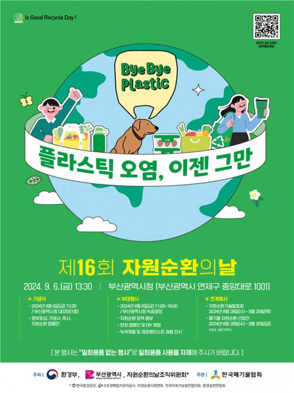[Q뉴스] 환경부는 9월 6일 오후 부산광역시청 대강당에서 ‘제16회 자원순환의 날’ 기념식을 개최한다.
