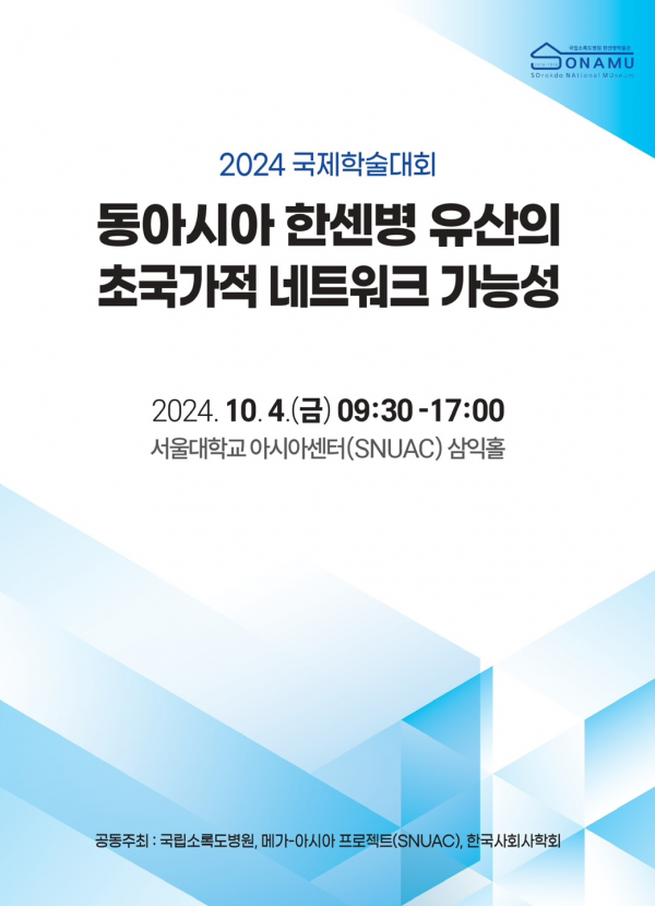 [Q뉴스] 국립소록도병원 한센병박물관과 ‘2024 the Korean National Commission for UNESCO project’팀은 2024년 10월 4일 오전 9시, 서울대학교 아시아연구소에서 ‘동아시아 한센병 유산의 초국가적 연계 가능성’을 주제로 국제학술대회를 개최한다.