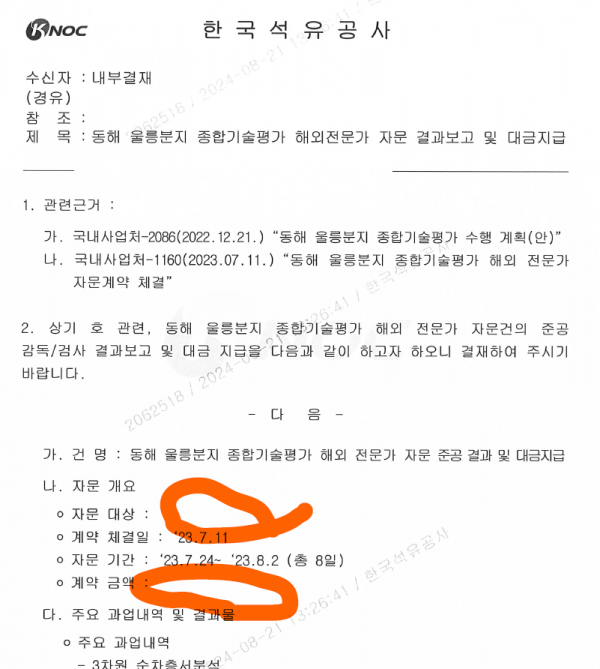 이언주 의원은 이날 국감 시작 전 의사진행발언을 통해“산업통상자원부가 제출한 한국석유공사가 국내 제8광구 및 6-1광구 북부지역 탐사시추 추진을 의결한 2024.1.26. 제569차 이사회 회의록은 많은 부분이 마스킹되어 내용파악이 어렵다”며 “한국석유공사 제8광구 및 6-1광구 북부지역 2022년도 연례보고서 2023년도 연례보고서 제6-1 해저광구 중부 및 동부지역 2023년도 연례보고서 대부분의 공문서 등은 많은 내용이 삭제되어 제출됐다”고 지적했다.
