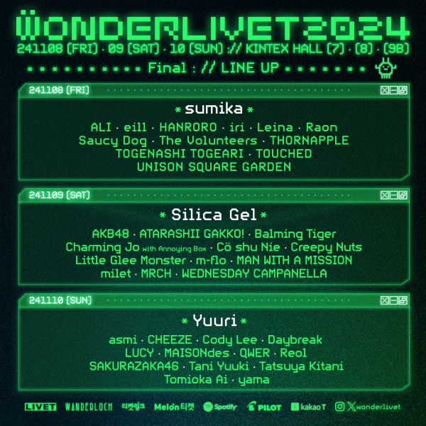 14일 오후 ‘원더리벳 2024’는 공식 SNS 채널을 통해 최종 라인업에 이름을 올린 7팀을 공개하며 총 40팀의 출연 아티스트 라인업을 완성했다.