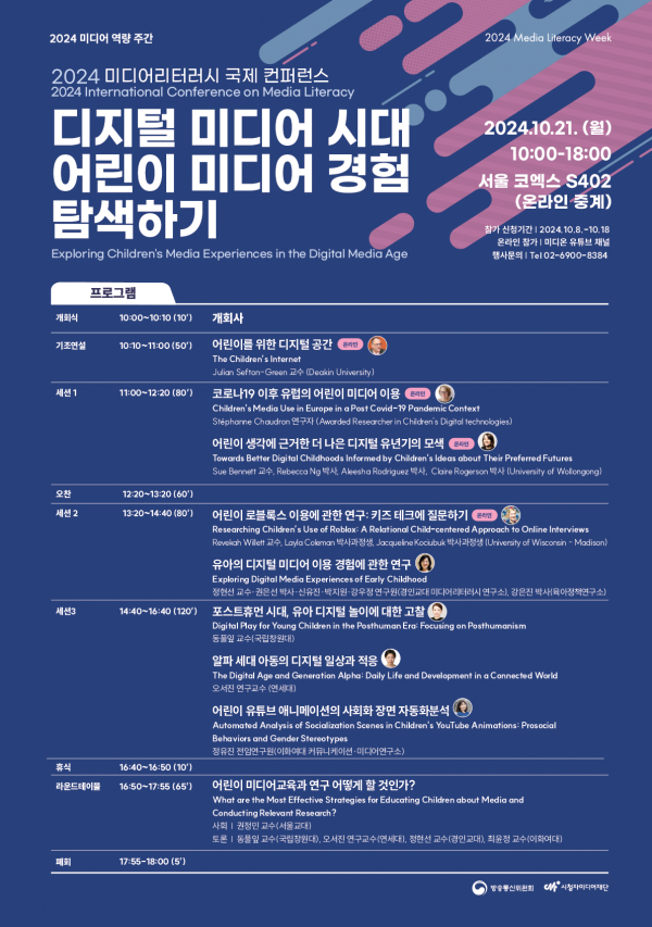 자세한 내용은 2024 미디어 리터러시 국제 콘퍼런스 홈페이지에서 확인할 수 있다.