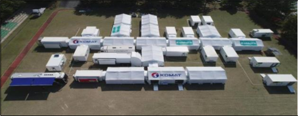 이동형병원은 대규모 또는 장기 의료지원이 필요한 재난 현장에서 임시의료시설의 역할을 수행하기 위해 설치하는 의료소로 응급실·수술실·중환자실을 포함해 최대 100병상까지 구축이 가능하다.