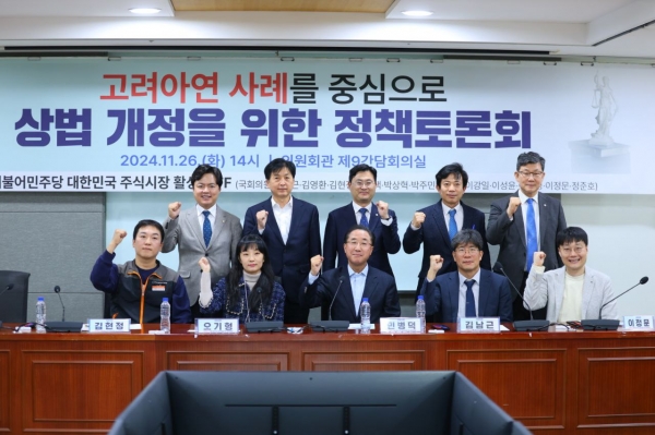 [Q뉴스] 더불어민주당 주식시장 활성화 TF 는 26 일 오후 2 시 국회의원회관 제 9 간담회의실에서 ‘ 고려아연 사례를 중심으로 상법 개정을 위한 정책토론회 ’ 를 성황리에 개최했다.