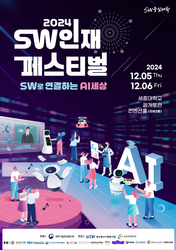 [Q뉴스] 과학기술정보통신부는 소프트웨어 인재 양성의 중요성을 알리고 소프트웨어 가치확산을 위해 12.5부터 12.6까지 ‘2024 소프트웨어 인재 축제’를 세종대 광개토관에서 개최한다.