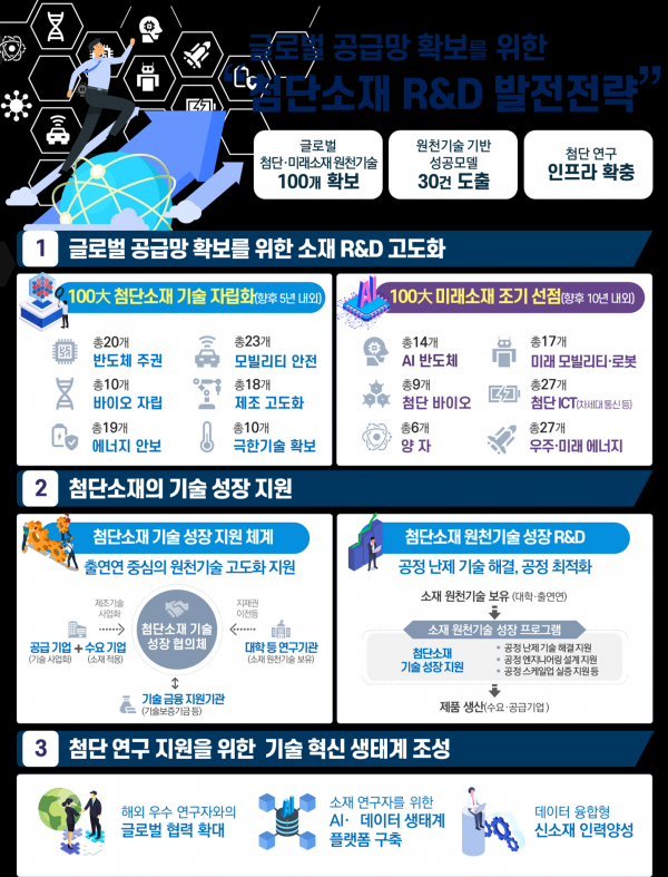 이번 전략은 세계 공급망 대응력을 높이기 위해서는 핵심이 되는 첨단소재 기술의 조기 선점을 추진하고자 마련됐다.