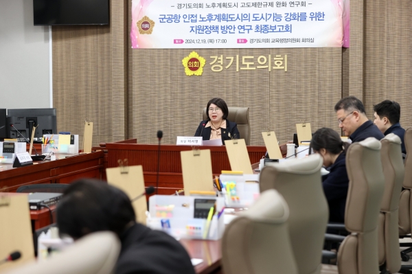 [Q뉴스] 경기도의회 교육행정위원회 이서영 도의원은 고도제한 규제가 적용되는 지역의 도시기능 강화를 위한 ‘군공항 인접 노후계획도시의 도시기능 강화를 위한 지원 정책 방안 연구’의 최종보고회가 19일 교육행정위원회 회의실에서 개최했다고 밝혔다.