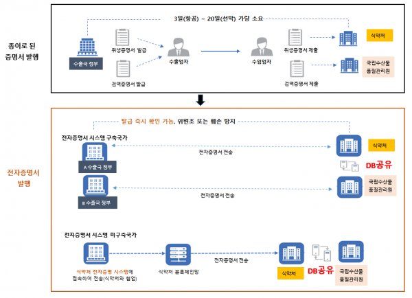 이로써 양 기관은 개별 시스템 구축·운영에 소요되는 행정비용을 줄이고 국가 간 전자증명서 활용으로 증명서의 위·변조를 방지해 수입 수산물 안전관리와 수산 생물의 질병 보호를 보다 강화할 수 있게 된다.