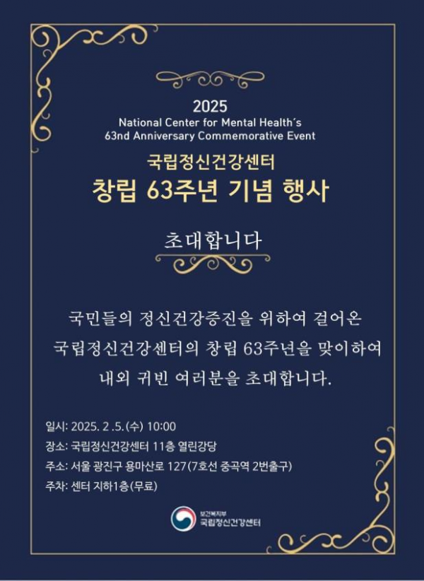 [Q뉴스] 보건복지부 국립정신건강센터는 2월 5일 오전 10시 국립정신건강센터 11층 열린 강당에서 ‘국립정신건강센터 창립 63주년 기념행사’를 개최했다.