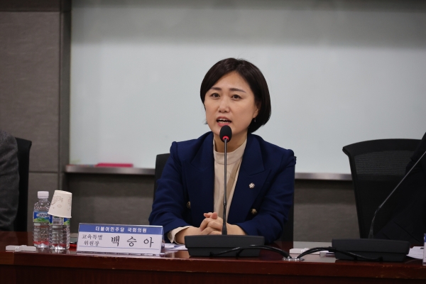 [Q뉴스] 더불어민주당 교육특별위원장 백승아 의원은 17 일 오후 국회의원회관에서 ' 안전한 학교 만들기 하늘이법 입법 추진 1 차 교원단체 간담회 ' 를 개최했다.