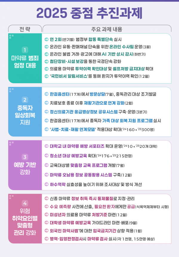 [Q뉴스] 정부는 마약류대책협의회 심의 및 민생범죄점검회의 논의 등을 거쳐 ‘25년도 마약류 관리 시행계획을 확정했다.