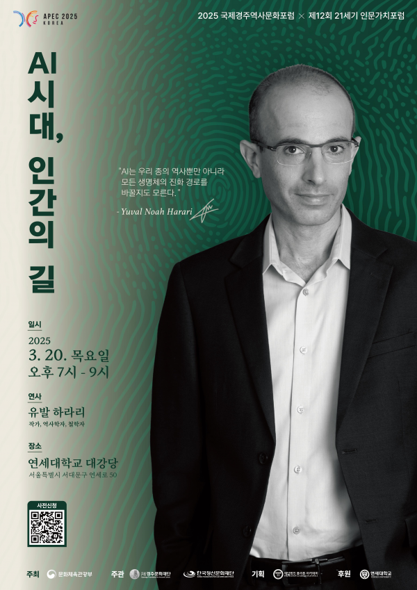 [Q뉴스] 문화체육관광부는 경상북도, 경주문화재단, 한국정신문화재단, 플라톤아카데미 등과 함께 3월 20일 오후 7시, 연세대학교 대강당에서 ‘2025년 아시아태평양경제협력체 정상회의’의 주제인 ‘우리가 만들어가는 지속 가능한 내일’을 문화적 관점에서 조망하는 특별 대담을 개최한다.