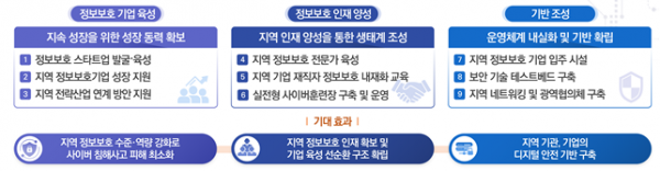지역 거점 정보보호 산학협력지구는 보안역량과 투자가 상대적으로 부족한 지역의 보안생태계 구축을 위해 추진하는 사업으로 선정지역에 종합지원시설을 구축해 지역 보안기업 육성, 지역 전략산업 수요에 기반한 전문 보안인력 양성 및 교육, 지역 전략산업의 보안내재화를 위한 시험장 조성을 주요 골자로 한다.