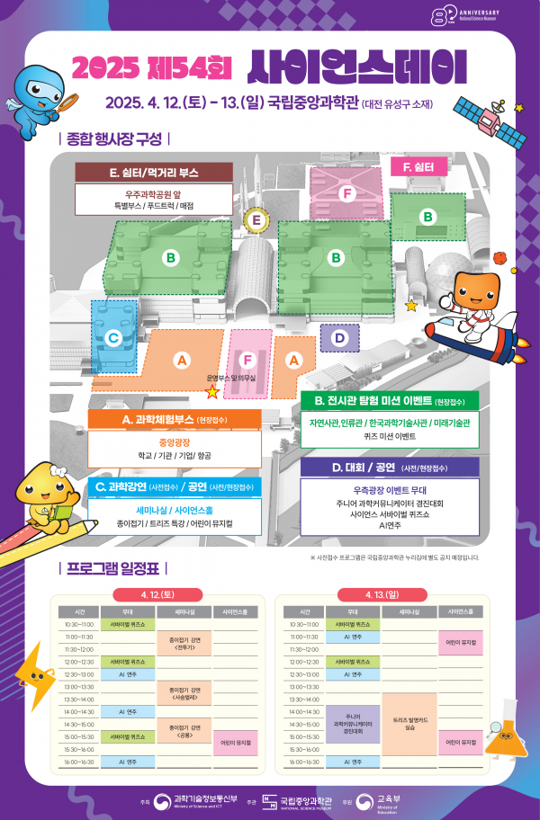 또한, 작년 큰 인기를 끌었던 ‘ 과학 생존 퀴즈쇼’ 가 중심 야외무대에서 펼쳐질 예정이다.