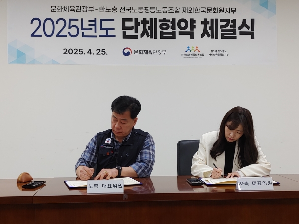 [Q뉴스] 문화체육관광부는 4월 25일 오전 10시, 한국노총 전국노동평등노동조합 재외한국문화원지부와 노사 간 첫 단체협약을 체결했다.