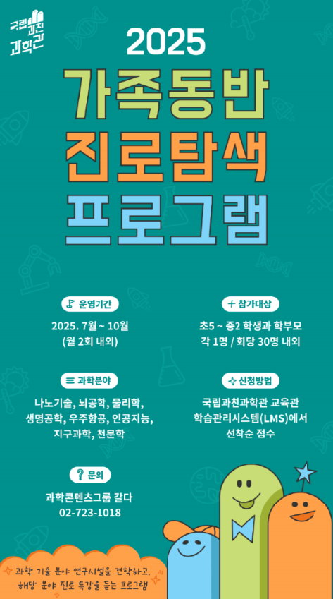 [Q뉴스] 국립과천과학관은 작년에 이어 올해 7월부터 10월까지 청소년과 학부모를 대상으로 ‘2025 가족동반 진로탐색 프로그램’을 운영한다.