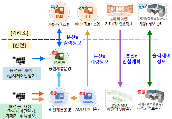 현재 신재생에너지는 전력시장을 통해 발전량이 결정되는 대신 전력망 운영자가 실시간 전력망 운영 상황에 따라 발전량을 파악하고 필요시 조정하는 자원으로 송전망 자원은 전력거래소가 송·배전망 자원은 한전이 각각의 모니터링 정보를 개별적으로 관리해 왔다.